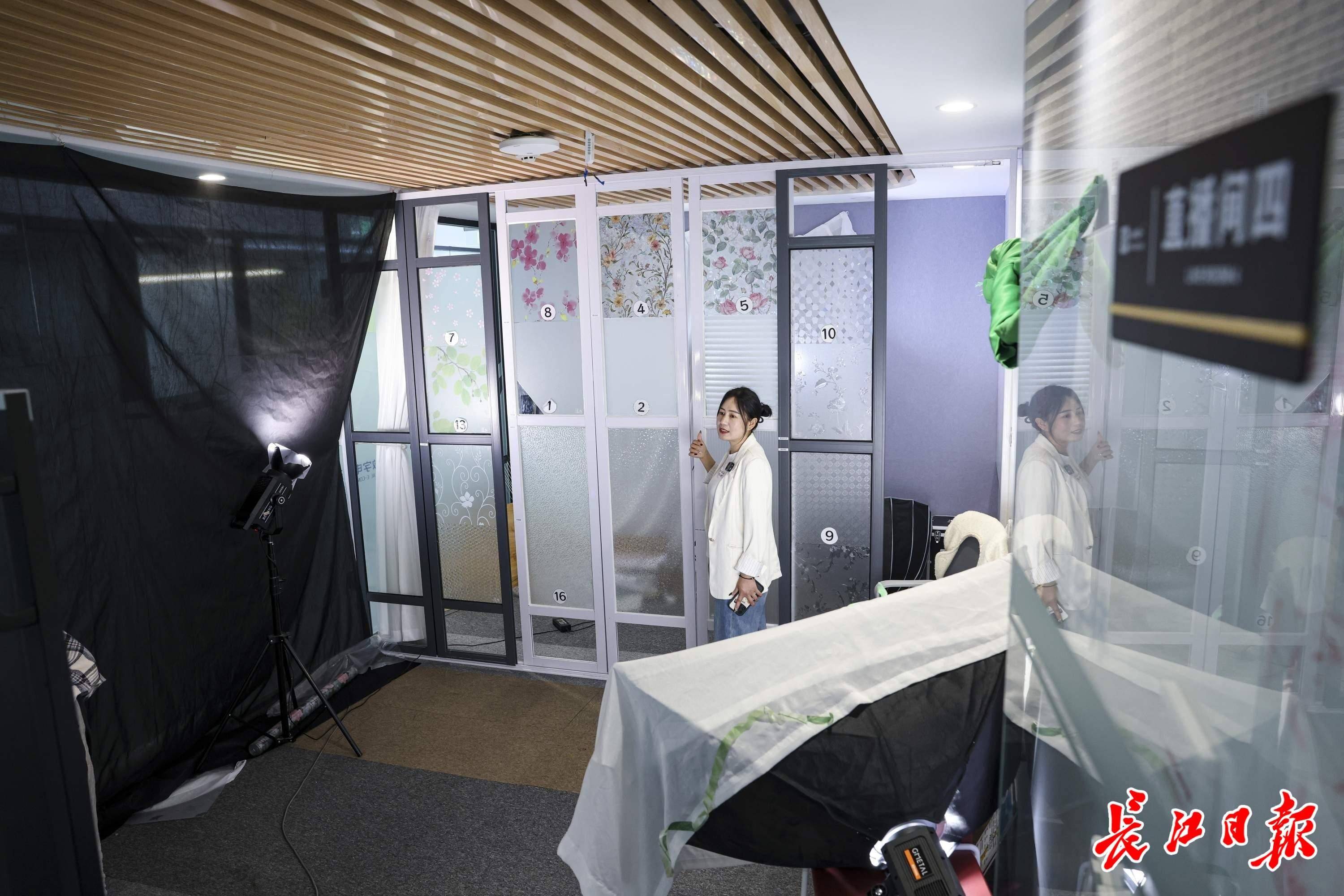 主播在武汉金控长江国贸跨境电商产业园直播推介武汉产品。 记者胡冬冬 摄
