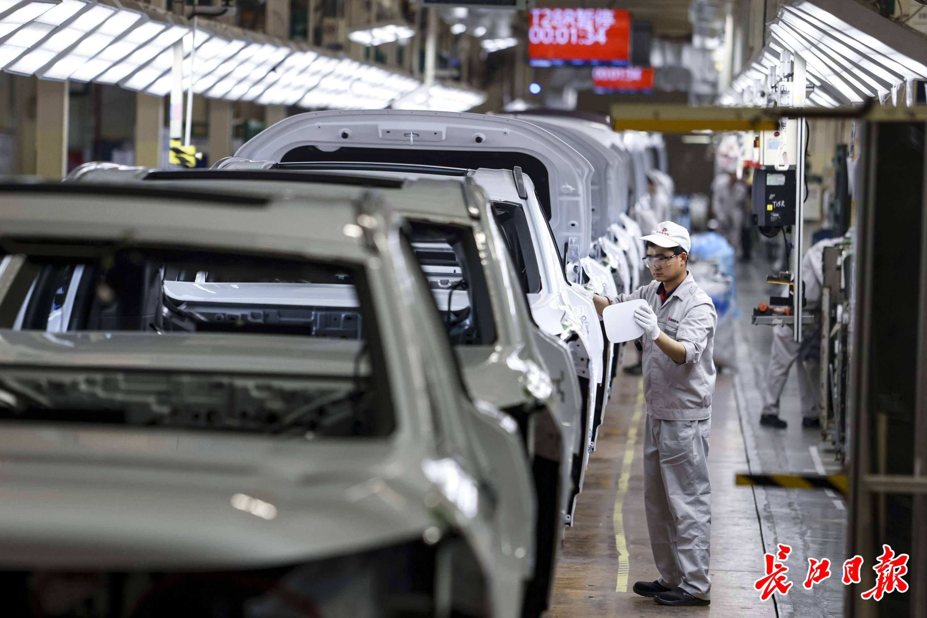 4月23日,东风奕派汽车科技公司(以下简称奕派科技)武汉二厂总装车间,机械臂自如挥舞,车身在空中“行走”,一辆辆崭新的新能源汽车在流水线上依次完成装配、平稳落地——每隔2分多钟,就有一台新车驶下生产线。
