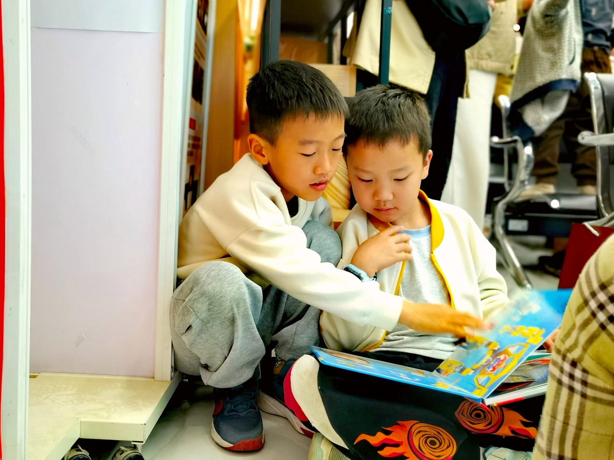 活动中,轮式人形机器人上当读书推广大使,推荐机器人主题科普绘本,吸引不少小朋友畅想自己以后也可以设计各种功能的机器人,比如帮自己做作业,比如潜入海底打捞垃圾,想法天马行空。