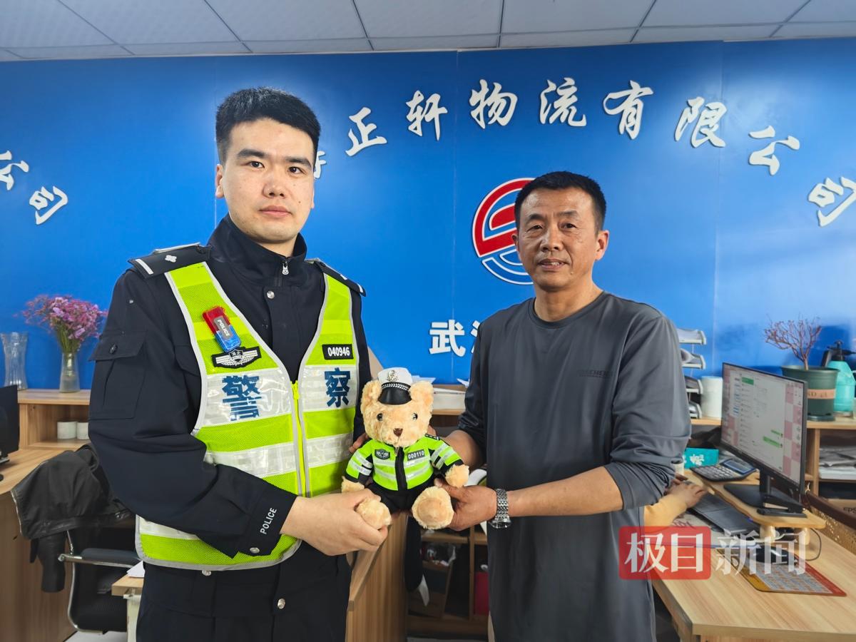 新闻记者采访获悉,耿良斌今年55岁,武汉市硚口区人。2001年考取驾照,曾给老板开车跑遍全国,也在武汉开过出租车。如今,他是东西湖区上海正轩物流有限公司的一名货车司机。4月25日下午,武汉市公安局黄陂区分局交警周家豪专程赶到耿良斌所在单位,当面表扬耿师傅,并送上一只“交警小熊”作为肯定。