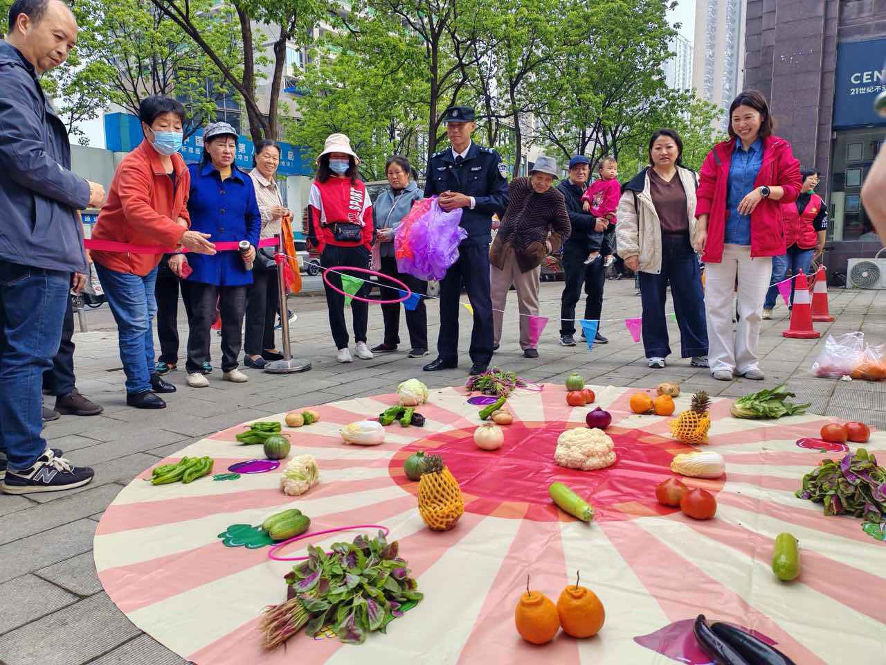 本次活动精心设计了三项趣味十足、互动性强的游戏环节,让不同年龄段的居民都能找到乐趣。最具人气的当属“福气套圈圈”游戏,工作人员早已将鲜嫩的黄瓜、饱满的西红柿、清脆的包菜等各色时令蔬菜整齐排列在场地中,居民们手持彩色套圈,瞄准目标轻轻一掷,套中即可将新鲜蔬菜带回家。大朋友、小朋友们排起长队,有的凝神屏息、精准发力,有的互相支招、分享技巧,每当有人成功套中心仪的蔬菜时,现场便响起阵阵欢呼,这份“接地气”的奖品让大家直呼“实用又有趣”。