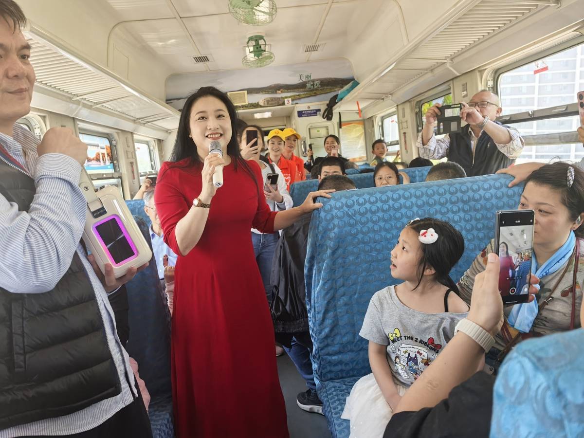 湖北日报讯(记者胡祎、通讯员刘娟、陈俊)“洪湖水呀,浪呀嘛浪打浪啊……”4月26日上午,一声清脆悠扬的歌声,从5856次“武昌至武昌”环线列车的车厢里飘出。演唱者是湖北省歌剧舞剧院艺术工作者、歌剧《洪湖赤卫队》第四代“韩英”扮演者马娅琴。1号车厢里,旅客不约而同停下交谈,纷纷举起手机,定格这趟旅途中的惊喜。当天,这趟列车共载有1600多名旅客,记者也置身其中,记录下这满车厢的歌声与欢笑。