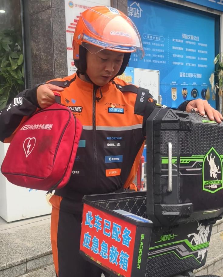 张宝剑是武汉市江汉区汉兴街道淘宝闪购红旗渠路驿站负责人,同时持有红十字救护师资格证和AHA国际救援证。2025年3月25日,他在送餐途中使用随身携带的AED设备对交通事故中受伤的七旬老人实施急救,并协助送医及通知家属。该事迹使其获得“蓝骑士社区侠”称号及多项省级荣誉。作为退伍军人,他长期参与公益急救活动,累计救助上百人,其电动车上常备AED、急救箱等设备。