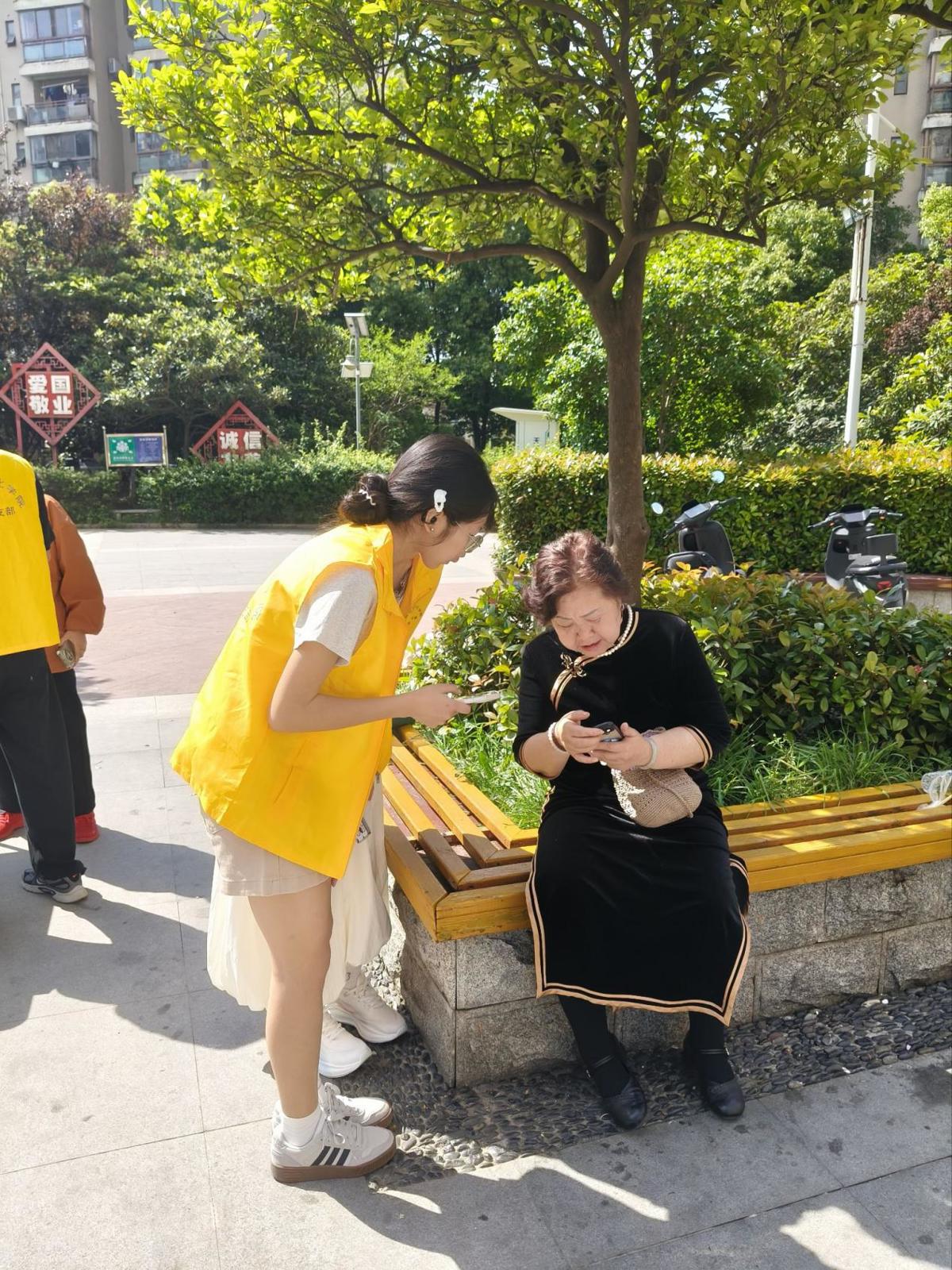黄马甲在社区小广场的树荫下交相辉映,成为春日里最温暖的风景线。教学过程中,青年志愿者充分发扬耐心细致、无私奉献的志愿精神,与老人们互帮互助、亲切交流,手把手反复演示,直到老人真正掌握、敢自己操作为止。经过两个多小时的陪伴式教学,参与活动的40余位老人中,90%以上学会了调节字体大小和发送微信语音,80%以上能够独立完成视频通话,约三分之一的老人在志愿者协助下首次尝试了扫码支付或线上挂号,消除了对智能技术的畏惧心理,享受到了数字生活带来的便利。
