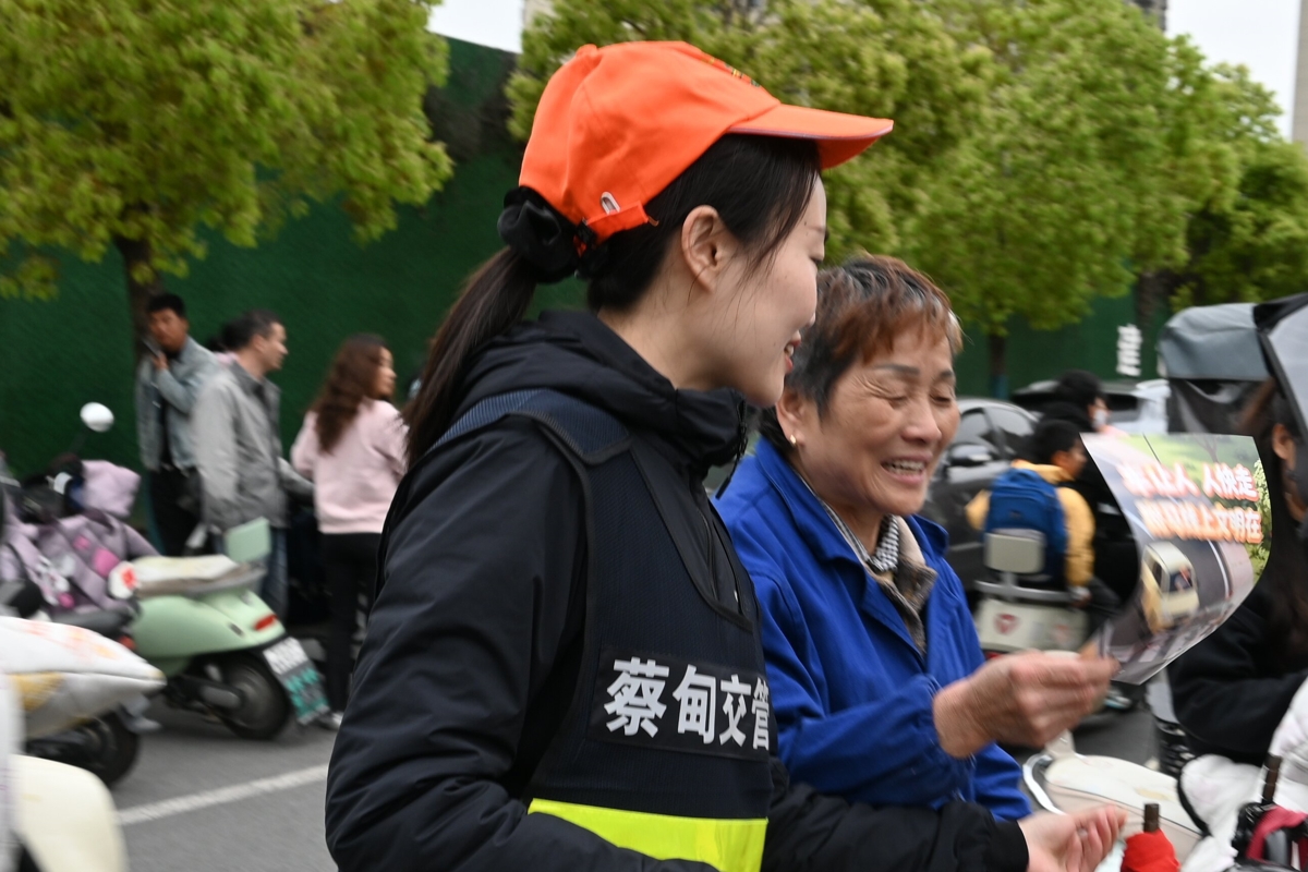 “家长您好,请把车辆有序停放在指定区域。”李辉耐心地引导接送车辆规范停放。义警队员们分工协作,有的在路口引导车辆礼让行人,有的牵起低年级学生的小手护送过马路,还有的向等候的家长和过往行人发放交通安全宣传资料。一抹抹“荧光绿”成为校门口最温暖的风景。