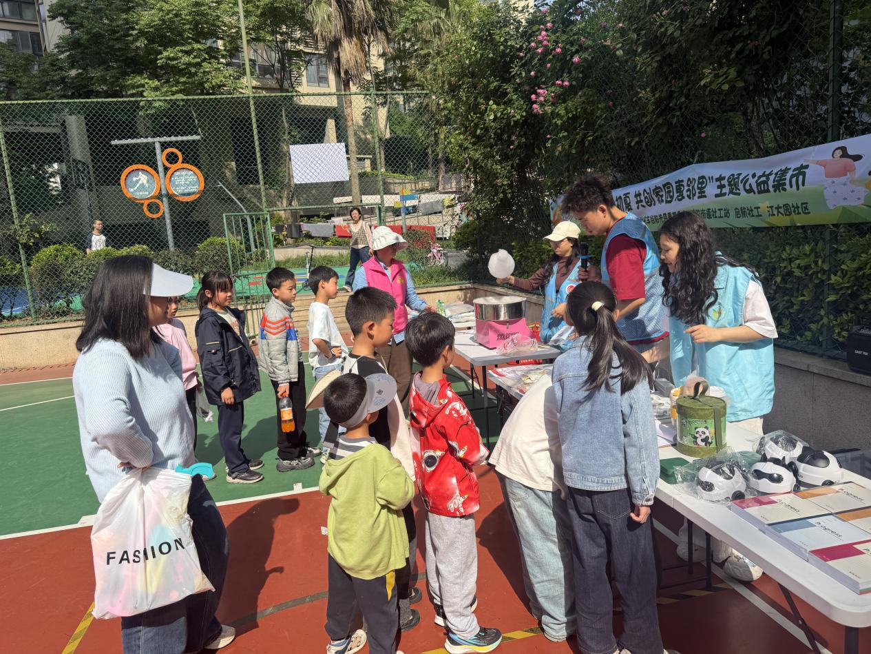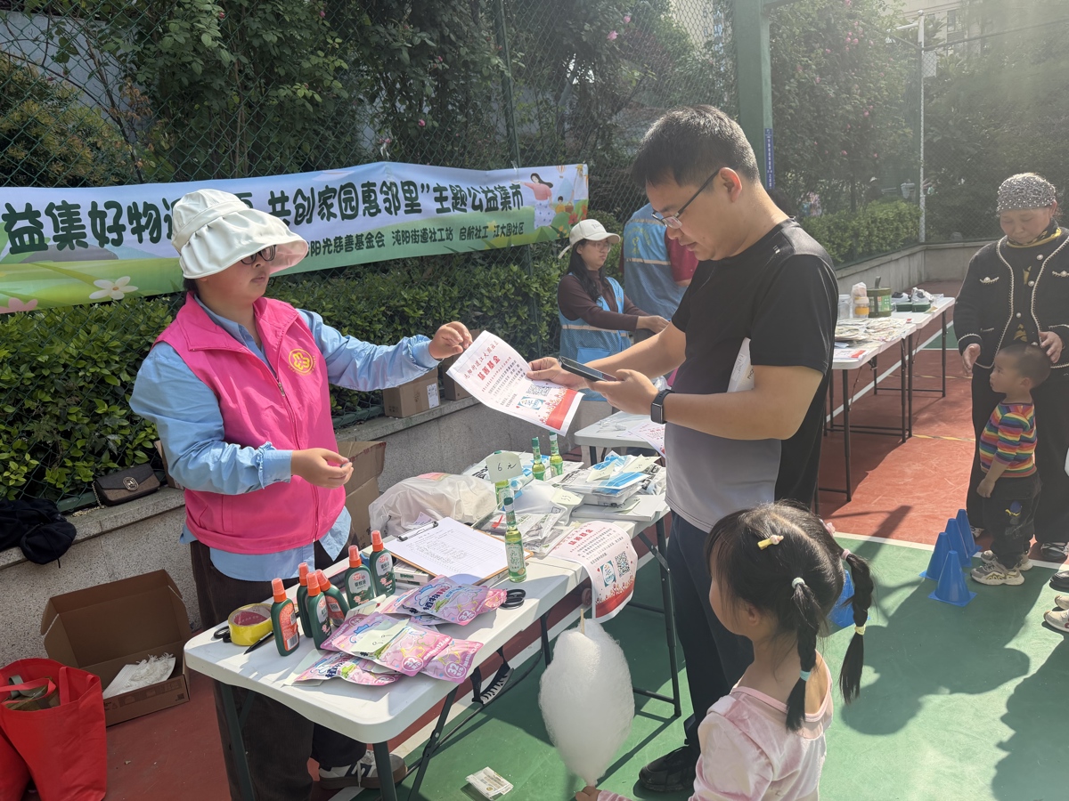 “正好缺瓶驱蚊水,还能为社区公益出份力,一举两得。” 义卖区,防晒袖套、手套、遮阳帽、驱蚊水、驱蚊手环、蒲扇等初夏防护物资整齐陈列,所有物资均以亲民公益价面向居民售卖;棉花糖制作区,香甜软糯的棉花糖深受孩子们喜爱,现场充满欢声笑语;趣味互动游戏区域,亲子家庭携手参与,在轻松的游戏中增进感情、拉近邻里距离,现场氛围温馨又热闹。志愿者分工协作,负责物资介绍、售卖、秩序维护等工作,耐心向居民讲解集市的公益属性,以及义卖善款将全部用于社区独居空巢老人关爱、儿童成长活动开展的用途。不少社区居民、亲子家庭闻讯前来选购,在满足自身防晒、驱蚊等生活需求的同时,以实际行动支持社区公益,现场互动温馨、氛围融洽。
