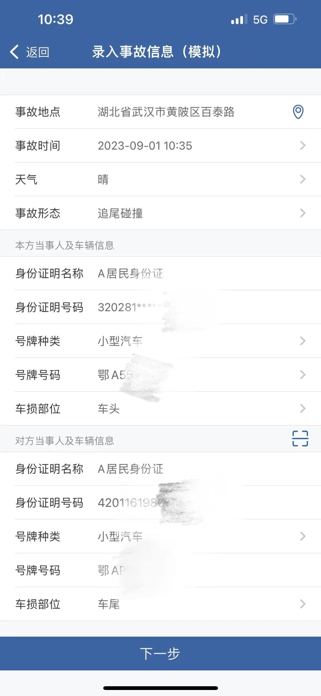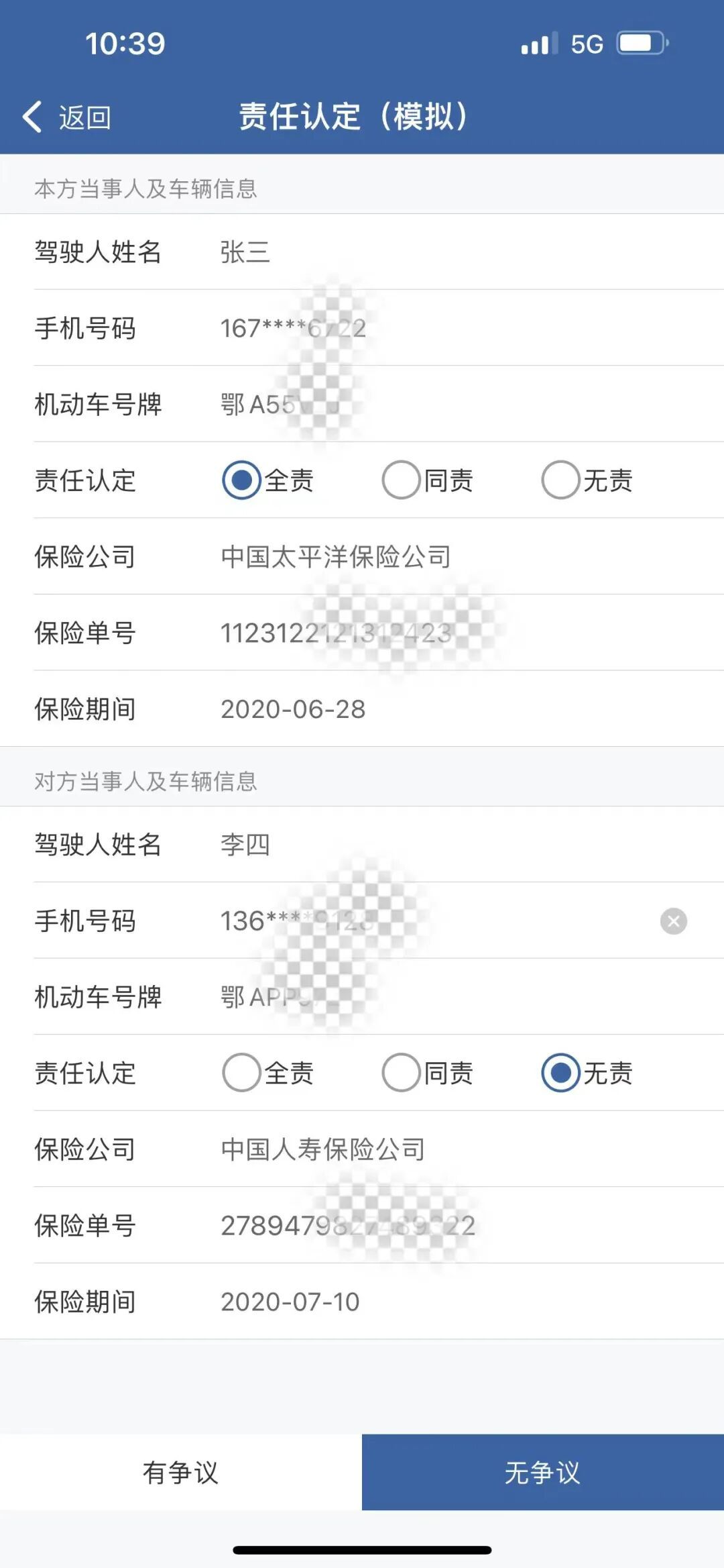 根据页面引导,录入相关事故信息。签名确认后会收到短信验证码,双方驾驶人无异议后签名即事故处理完毕,后台审核后生成电子版道路交通事故自行协商协议书,向保险公司进行理赔即可。
