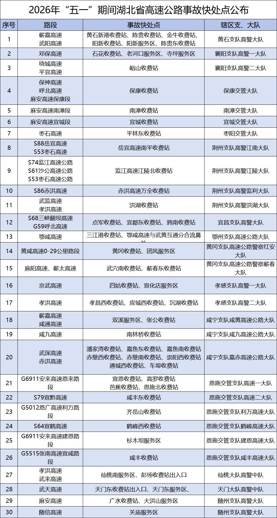 湖北全省高速公路车流将迎来高峰。车流虽密,务必谨慎驾驶。若发生轻微事故,请在确保安全的前提下拍照取证,撤离至就近快处点。