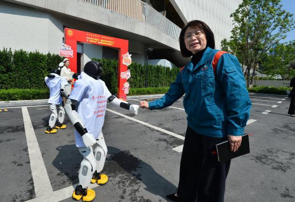 人形智能机器人与参会代表握手