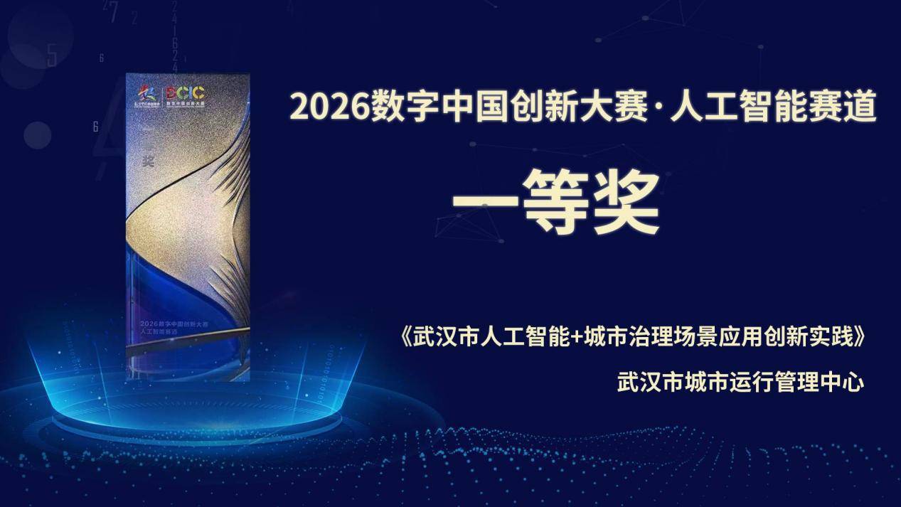 湖北日报讯( 通讯员刘释疑)4月28日,2026数字中国创新大赛·人工智能赛道总决赛在福州举行。经过多轮激烈角逐,4月29日,武汉市城运中心申报的“武汉市人工智能+城市治理场景应用创新实践”成果荣获数字中国创新大赛总决赛全国一等奖,这是武汉首次获得该项赛事最高荣誉,实现历史性突破。