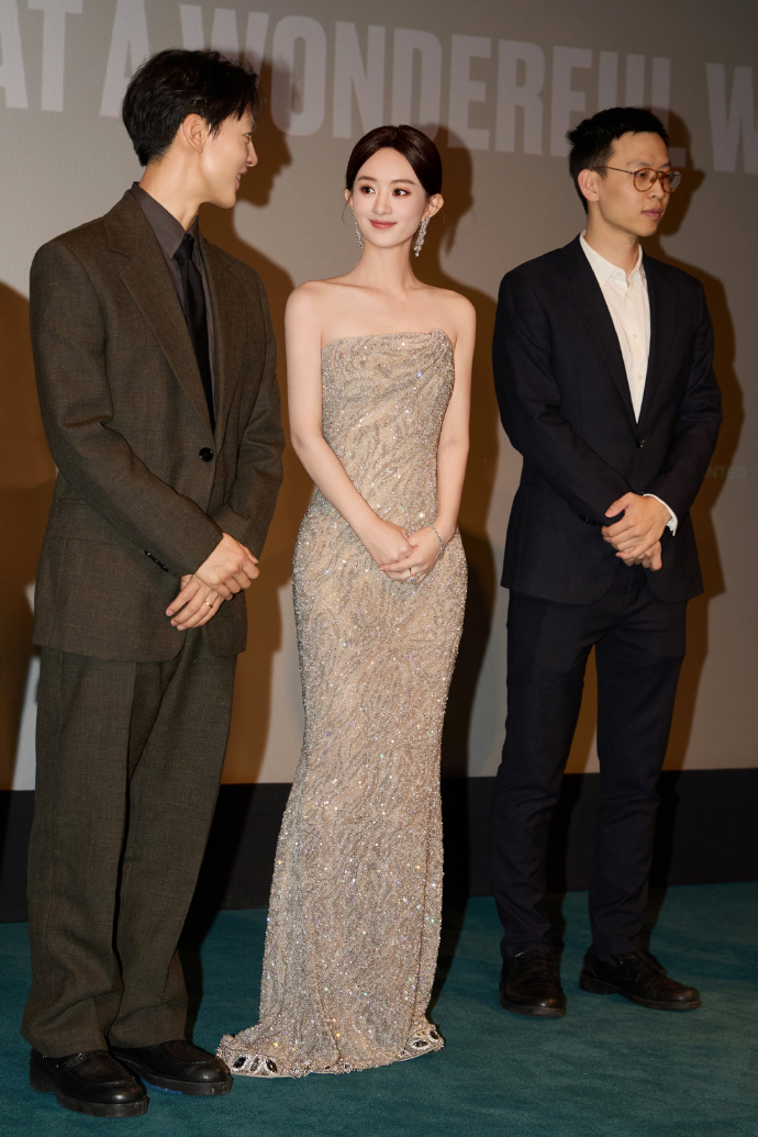 赵丽颖的头发从此前的粉色染回了黑色,身穿阿玛尼2025春夏高级定制礼服。