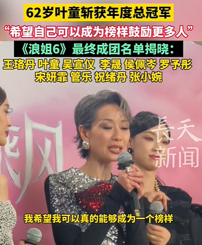 我在初舞台的时候说,20岁,我拿到了人生的第一个最佳女主角奖项。今天,再站上领奖台上,是62岁的叶童完成了人生中另一个重要的角色——我自己。因为《乘风》,我发掘了自己更多的潜能,而如果我的故事能让更多人获得鼓励,这就是我乘风的意义。