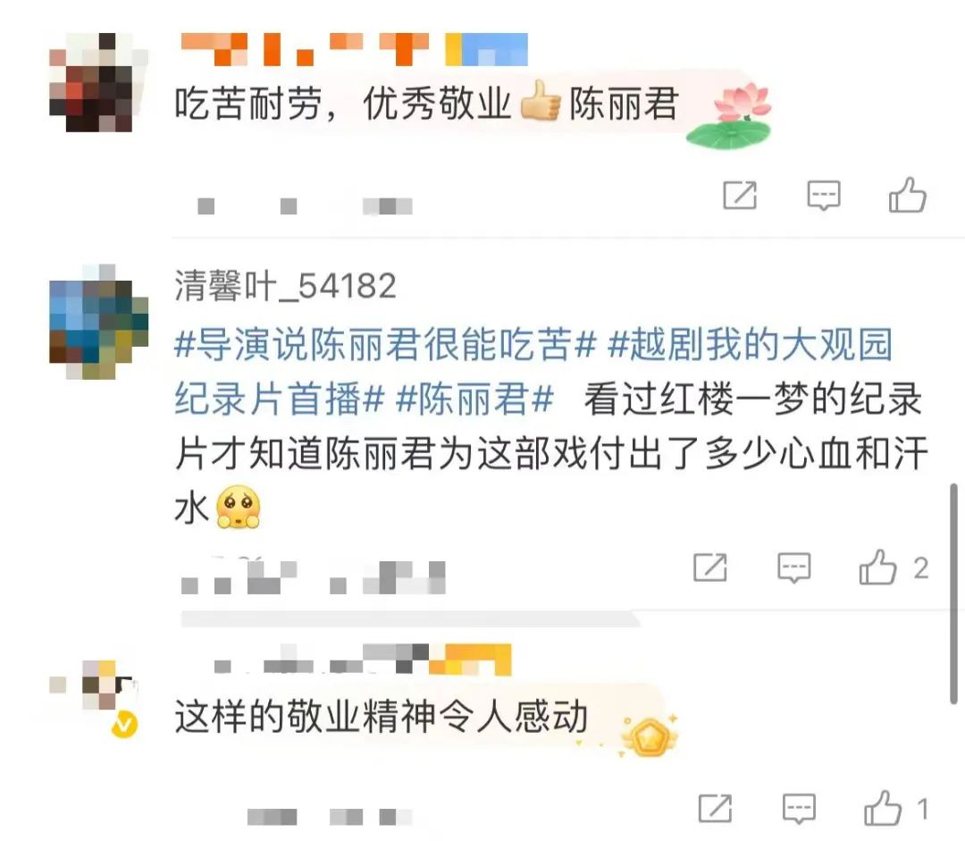 网友评论:陈丽君真的很爱她的越剧,她真的很优秀、敬业!