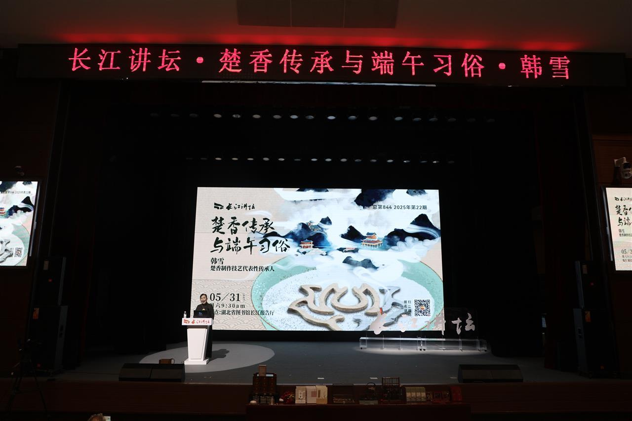 5月31日,正值端午节,楚香制作技艺代表性传承人韩雪以“一缕楚香传千年,端午岁时寄安康”为主题,开启《楚香传承与端午习俗》文化讲座,以文字考据、民俗解析与端午习俗为脉络,解码楚香文化的精神内核与当代价值。