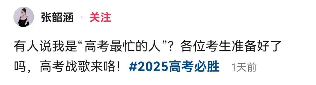 今天是高考的第二天,歌手张韶涵却成了“高考最忙的人”?