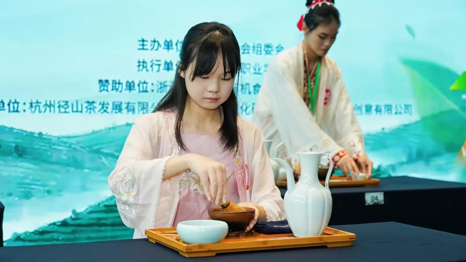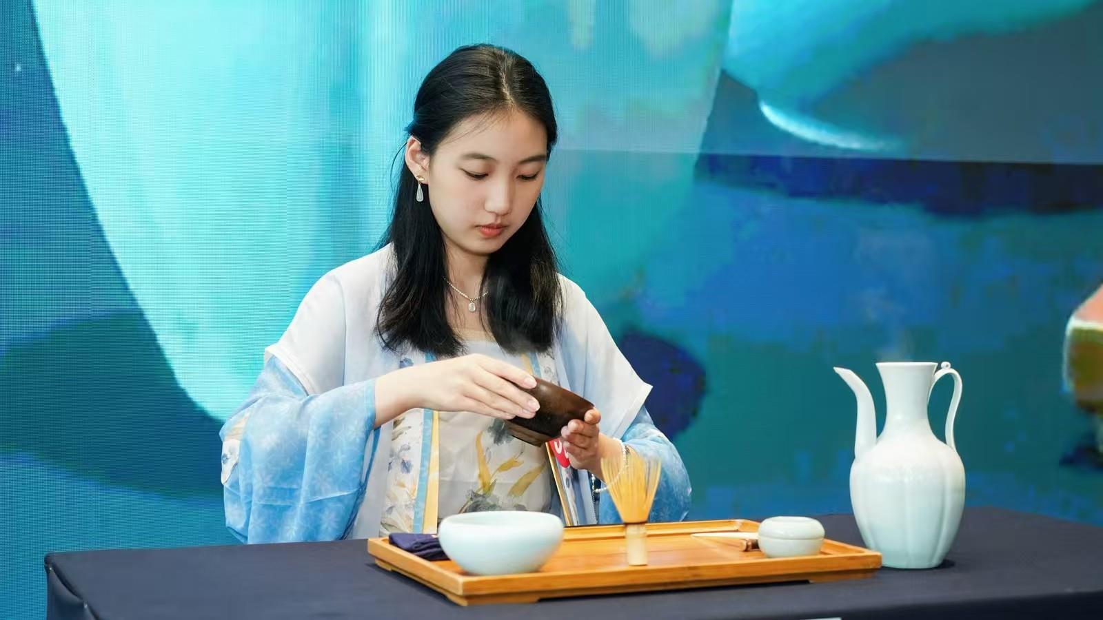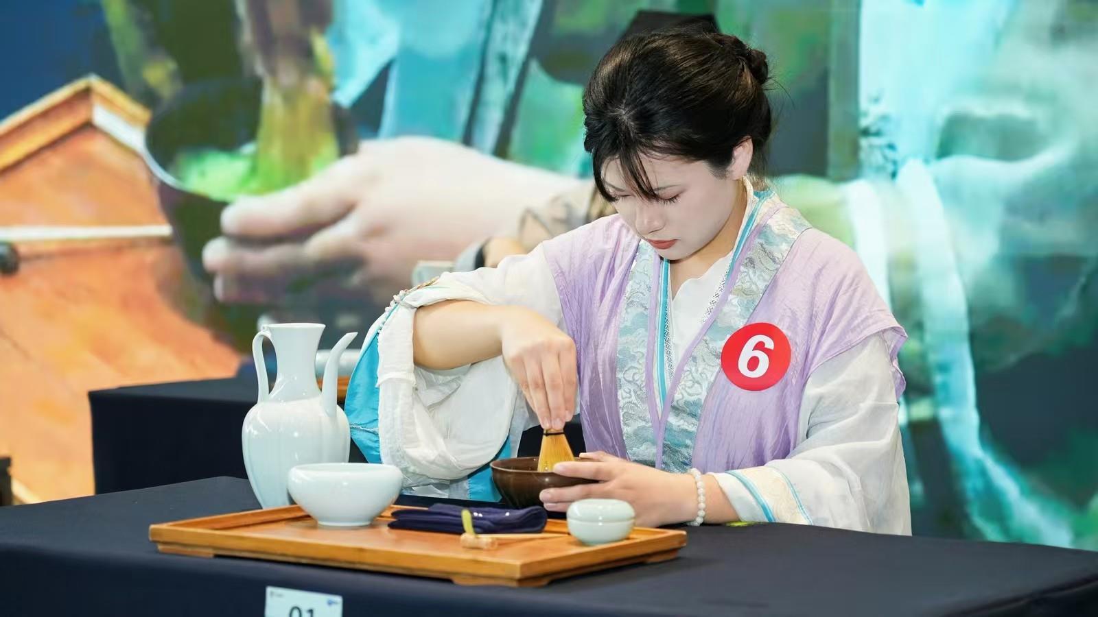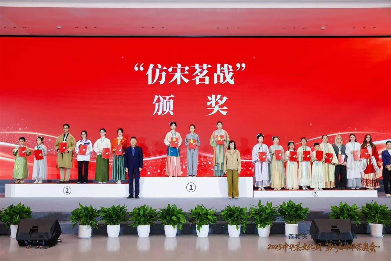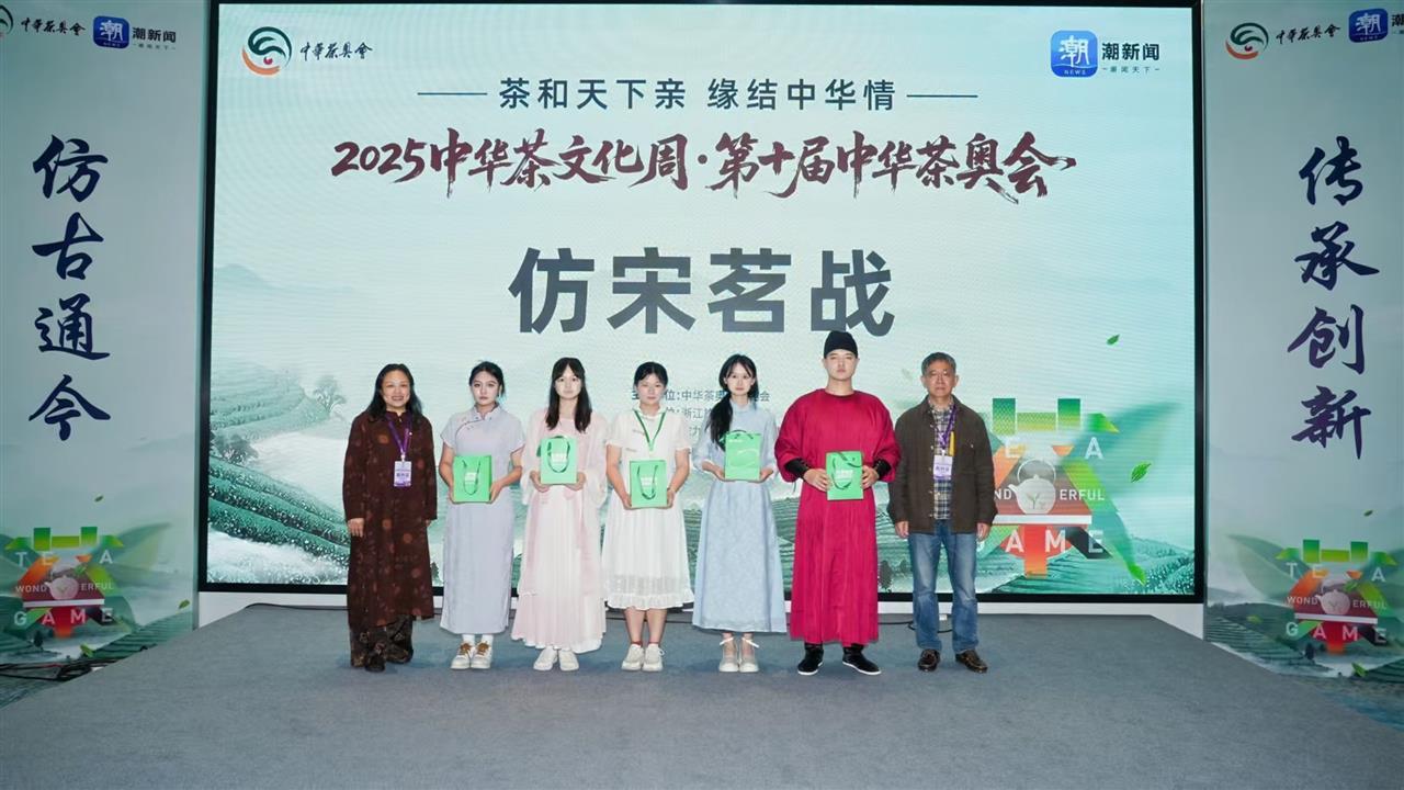中华茶奥会由中国国际茶文化研究会、杭州市人民政府等单位发起,是响应国家乡村振兴战略和“一带一路”倡议的重要举措,被称为“茶界奥林匹克”。本届中华茶奥会以“茶和天下亲,缘结中华情”为主题,涵盖茶艺、调饮、鉴茶等多个竞赛领域。其中,“仿宋茗战”赛项尤为引人注目,它要求选手不仅需掌握娴熟的茶艺技巧,更需深入理解宋代点茶文化,在服饰、礼仪、器物及茶汤呈现上高度还原宋式风雅,是对选手文化素养的全面考验。