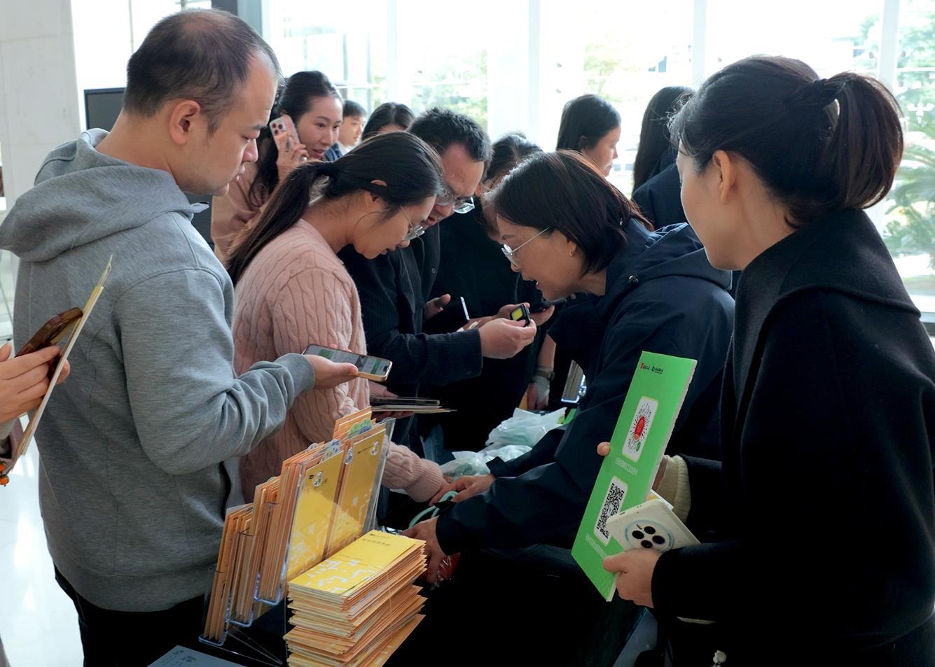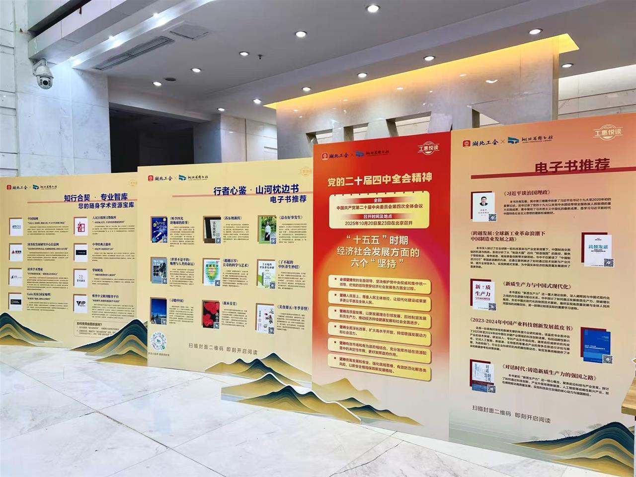活动现场气氛热烈、秩序井然。在“数字悦读·智享生活”服务区,职工们踊跃办理工会电子会员卡,成功解锁湖北省图书馆丰富的数字资源。大家尤其关注“学习贯彻党的二十届四中全会精神”“行者心鉴·山河枕边书”专题展板及相关电子书推荐,纷纷在展板前驻足阅读。《习近平谈治国理政》《新质生产力与中国式现代化》等党政学习资料也以电子书的形式向职工免费开放。