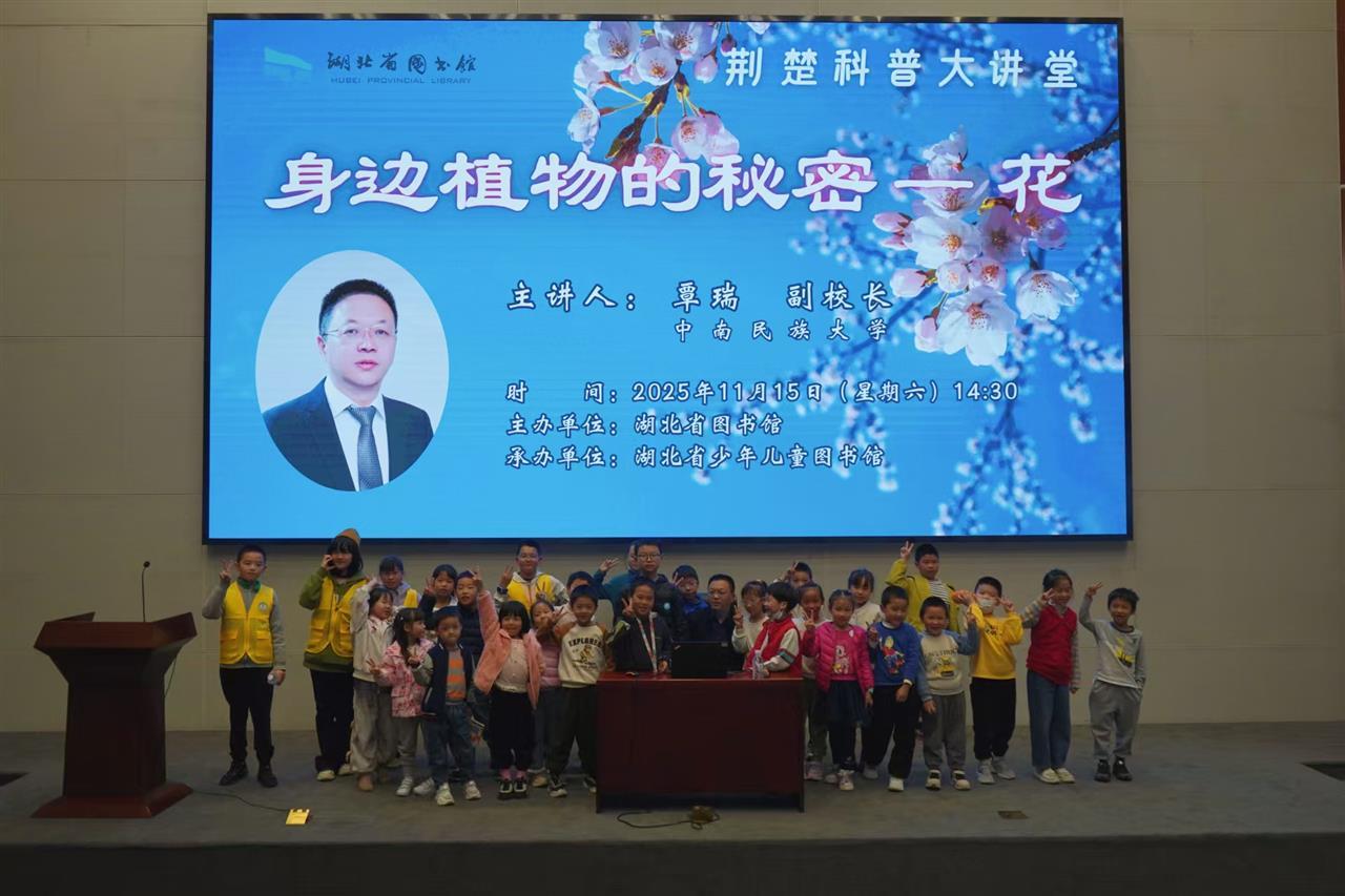“为什么玫瑰花有刺?”“牵牛花早上开晚上合是在睡觉吗?”近日,湖北省图书馆汉江报告厅内座无虚席,300名小读者和家长带着满脑子的好奇与疑问,参加省图书馆“童之趣——荆楚科普大讲堂”活动。本期活动邀请中南民族大学副校长覃瑞教授,讲述《身边植物的秘密——花》。